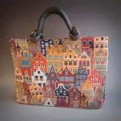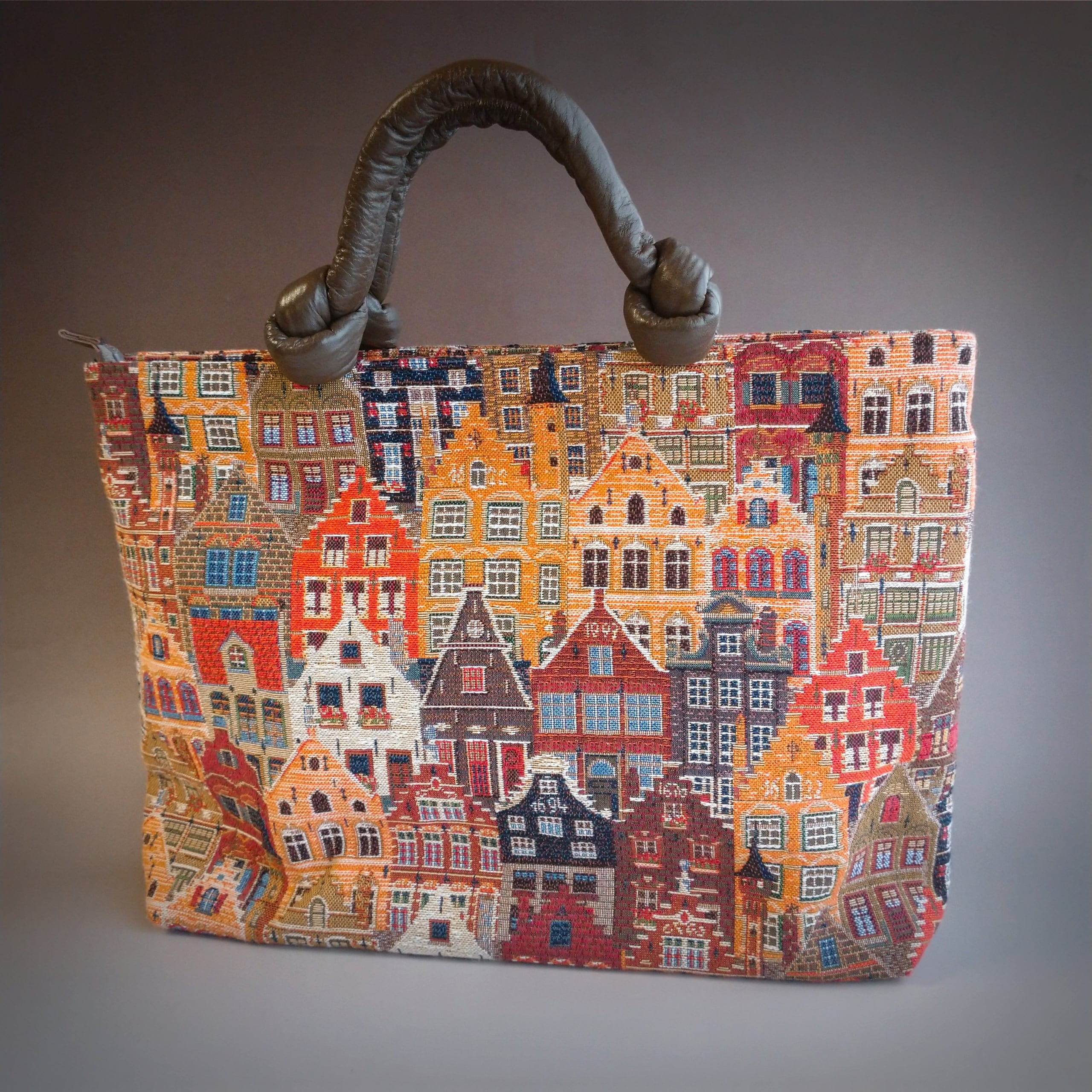 ヨーロッパの街並みを描いた街並みシリーズのトートバッグ。ベルギー製生地使用。