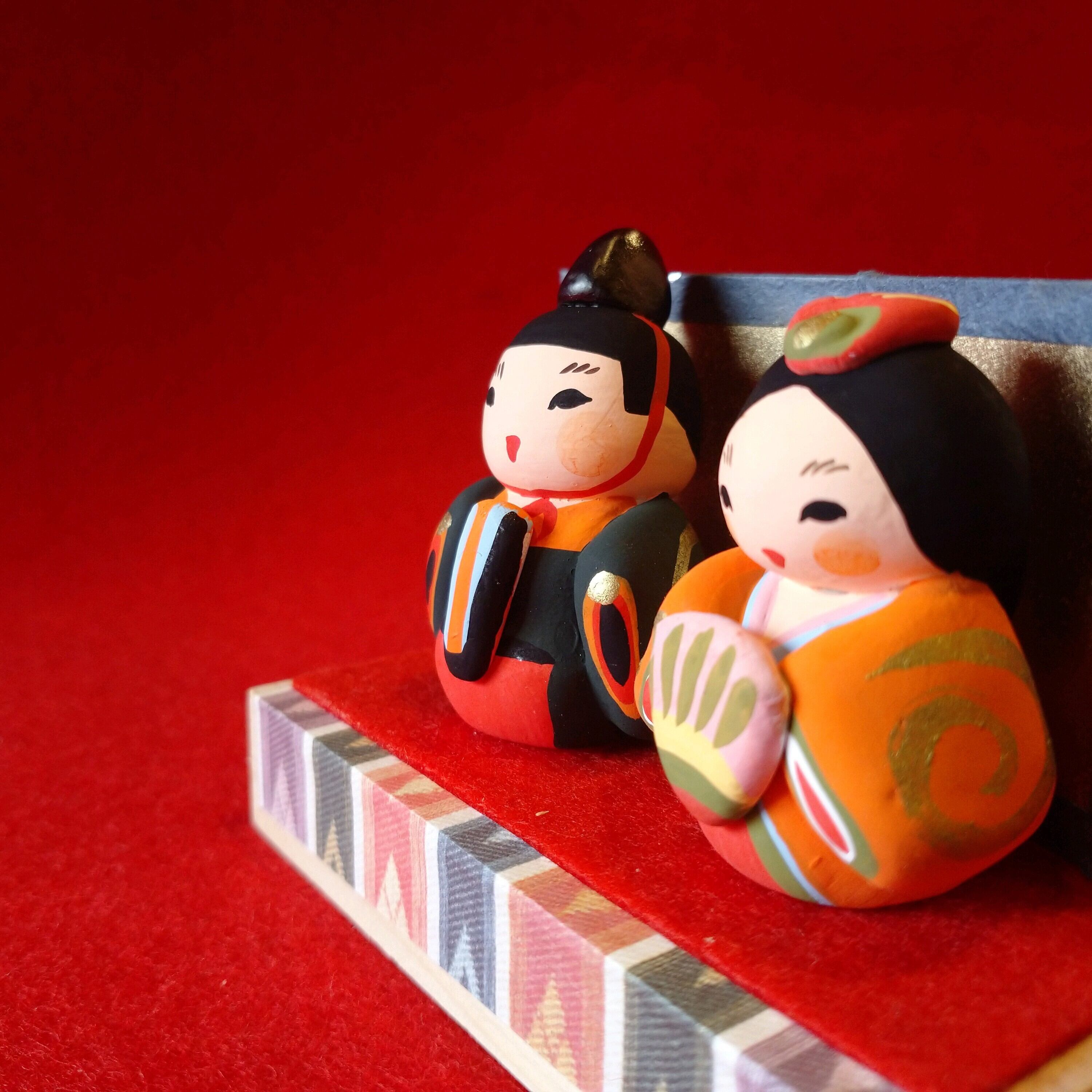 戦後から続く伝統品、門司ヶ関(もじがせき)人形。元々は子供向けのシャボン玉水のオマケとして始まり、一度は途絶えたが、その後再び復活し、全国の郷土玩具愛好家に親しまれるようになった。こちらは雛人形のセットです。