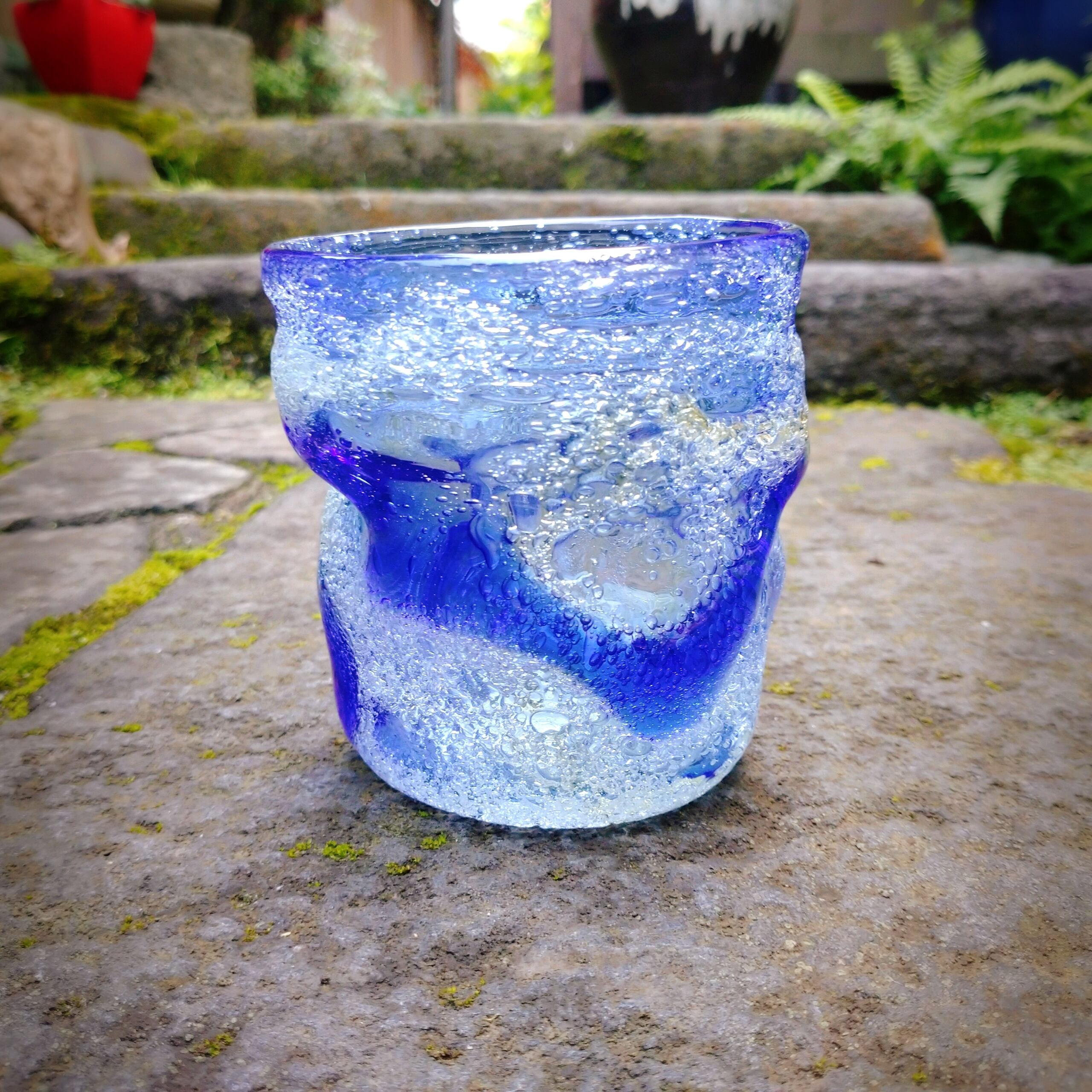 弾けるような白、波のようなブルー。琉球泡グラス。