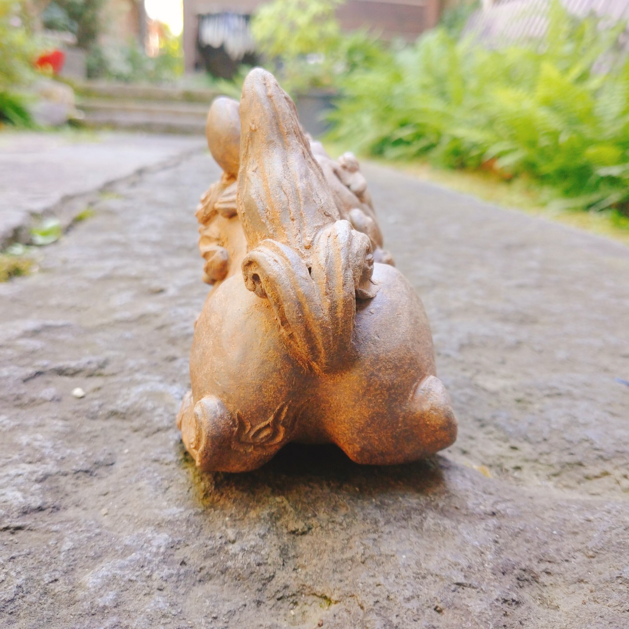 四つん這いポーズのシングルシーサー。つぶらな瞳と分厚い唇がなんとも愛らしいシーサーです。