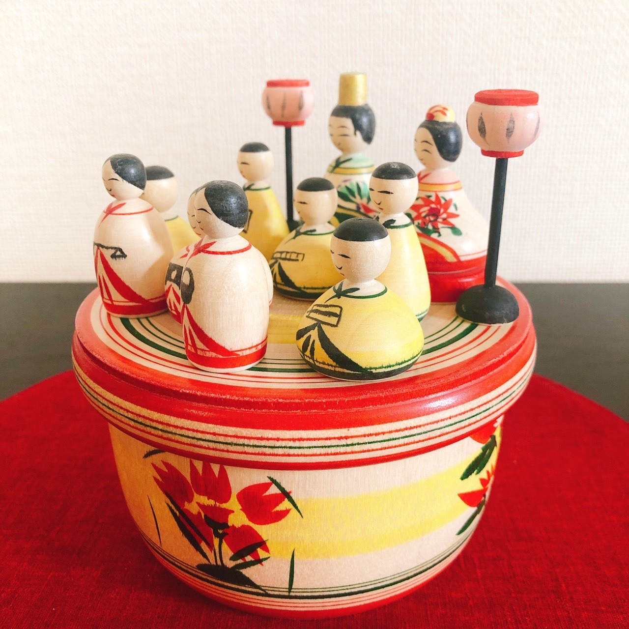 収納が出来る小物入れが付属します。こちらは大セット、お内裏様、お雛様、三人官女、五人囃子が入っています。小物入れは台座として飾ることが出来ます。