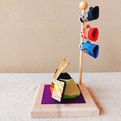 ちりめん素材のコンパクトな五月人形です。