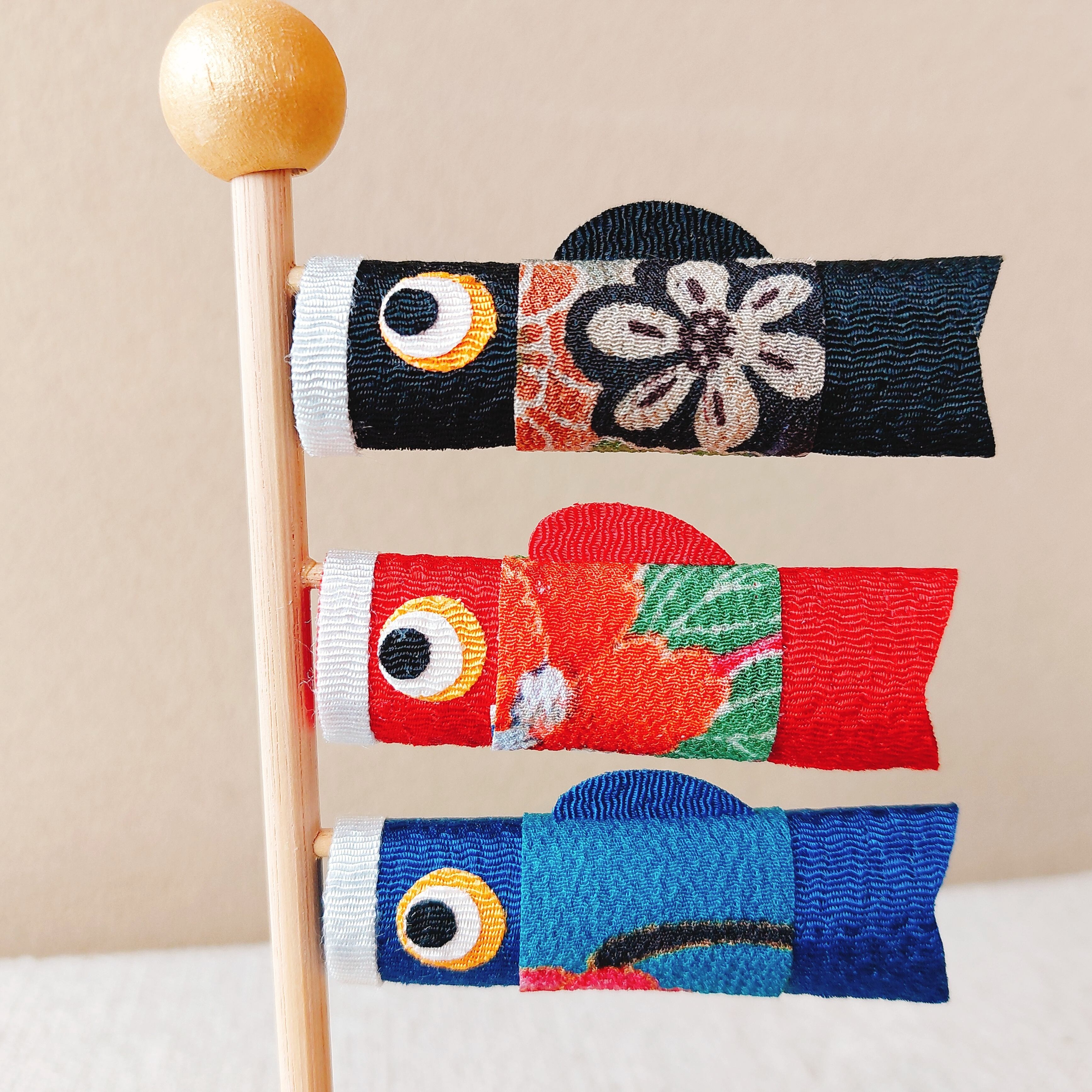 台座・こいのぼりの棒には天然の白木材を使用しており、ほのかに木の香りがします。